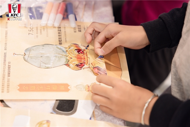 肯德基故事会一直倡导“边玩边学”、“寓教于乐“。本次活动特别设置了两个趣味横生的手工环节,让每位小朋友都能亲身体验文博工作的乐趣。现场小观众兴致盎然地制作了 “唐妮儿”砂画,小朋友们运用彩砂,将手中的“唐妮儿”变成了属于自己的“唐三彩”砂画,发挥想象力,在色彩搭配中感受唐代艺术的绚丽与奔放。