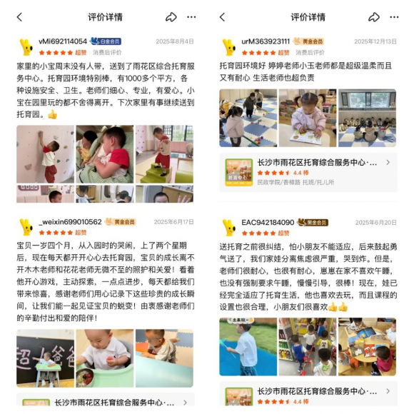 不止晨晨妈妈,不少家长都在平台上留下真挚评价:“孩子在老师科学引导下,养成了良好习惯,语言表达也进步很大。”“孩子从一开始抗拒入园,到现在开开心心上学,离不开老师的耐心陪伴,还学会主动探索、大胆尝试了。”看得见的改变,实打实的效果,让家长更认可和放心。